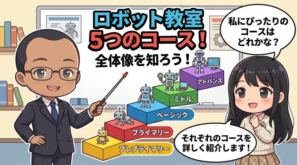 「子どもにロボット教室を習わせたいけど、どんなコースがあるの?」「うちの子の年齢でも通える?」「月謝はいくらかかるの?」