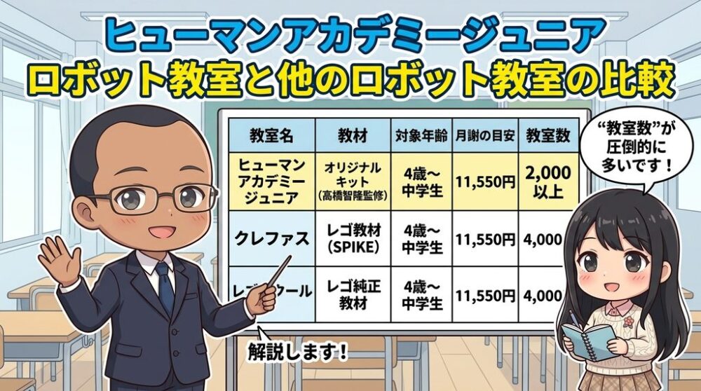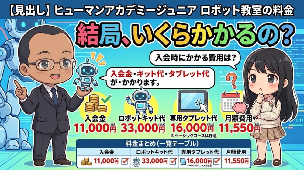 本記事では、ヒューマンアカデミージュニア ロボット教室のコース・対象年齢・料金を、わかりやすくまとめて紹介します。