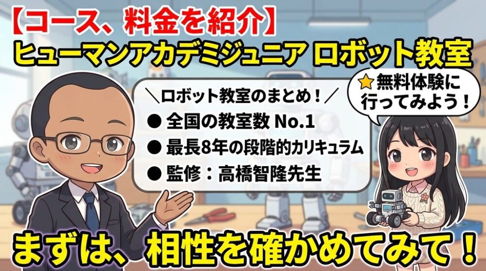 以上、「【コース、対象年齢、料金を紹介】ヒューマンアカデミージュニア ロボット教室の紹介」でした。